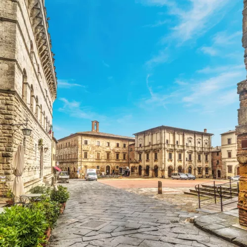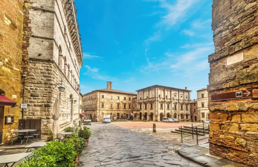 Heute erwartet dich das Herz des Val d’Orcia. Du beginnst mittags in Montalcino, wo du durch die Gassen zur Festung schlenderst und vielleicht einen Brunello probierst. Am Nachmittag geht es weiter nach Pienza für einen Stadtbummel mit Panorama. Zum Abschluss erkundest du Montepulciano, wo du den Tag mit einem Glas Vino Nobile und einem Abendessen in der Altstadt ausklingen lässt.