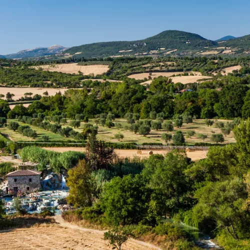 Vormittags entdeckst du Sovana, einen ruhigen Ort mit etruskischem Erbe. Danach geht es weiter nach Sorano, dessen Gassen sich spektakulär in die Tufffelsen schmiegen. Am Nachmittag erreichst du Pitigliano, das mit seiner Silhouette auf dem Felsrücken beeindruckt. Wenn du noch Energie hast, fährst du weiter zur Therme von Saturnia und genießt ein spätes Bad in warmem Wasser unter freiem Himmel.